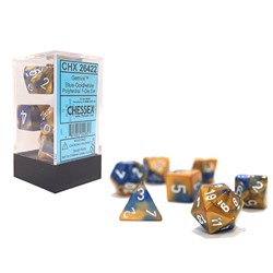 Blue-Gold with White Gemini Polyhedral 7-Die Set Chessex CHX26422