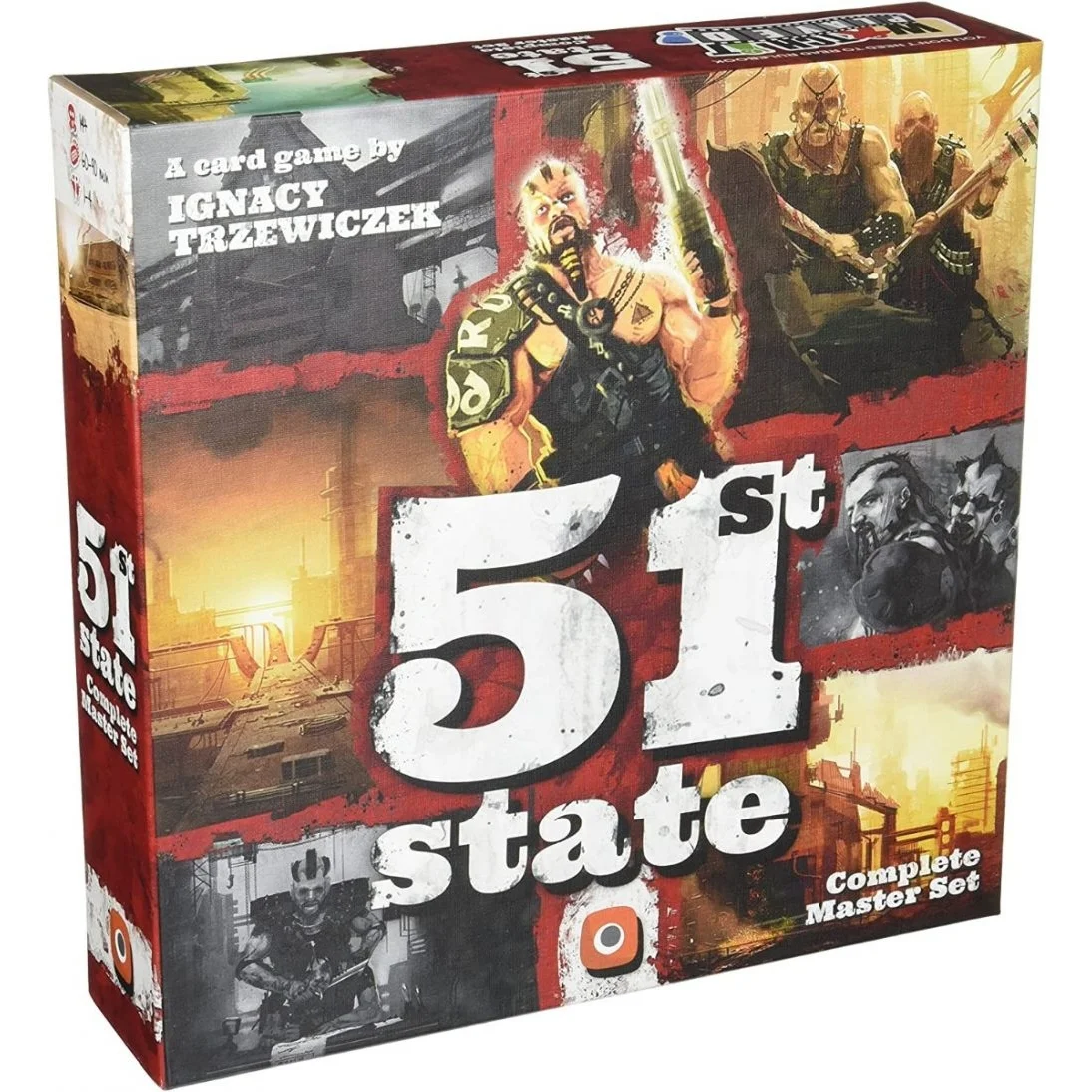 The world you know no longer exists. There is no government. No army. No civilization. The United States has collapsed, and now thirty years after the war started, new powers finally try to take control over the ruined country, try to establish a new order, try to control others and create a new country, a new state: the 51st State. 51st State is a card game in which players control one of four powers trying to build a new country. Players put new locations into play, hire leaders, and send people to work in buildings to gain resources and new skills. To do this, every card in 51st State can be used in three different ways: Raze a location to gain many resources once. Deal with this location to gain one resource every turn. Build the location so that you can use its skill each turn. 51st State: Master Set marks the rebirth of the 51st State line, with this set containing 88 cards from the original base game, and 50 cards each from both the New Era and Winter expansions; one of these expansions can be mixed with the cards of the base game, but not both at the same time. The entire set has been rebalanced to offer a cohesive experience no matter which expansion you choose to use.