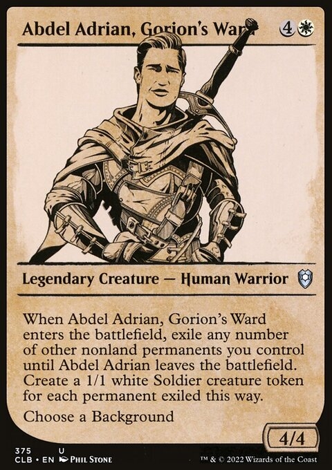 When Abdel Adrian, Gorion's Ward enters the battlefield, exile any number of other nonland permanents you control until Abdel Adrian leaves the battlefield. Create a 1/1 white Soldier creature token for each permanent exiled this way.