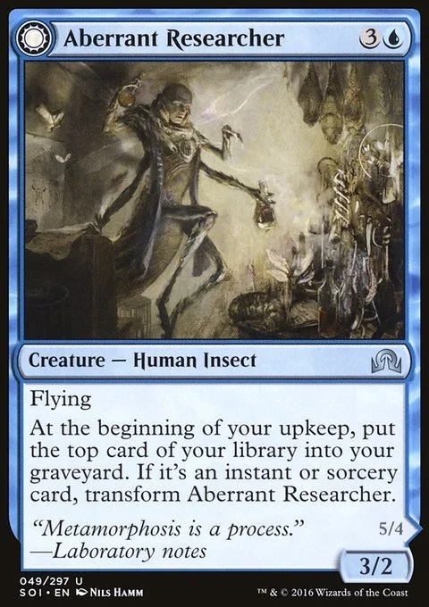 Aberrant Researcher Flying At the beginning of your upkeep, mill a card. If an instant or sorcery card was milled this way, transform Aberrant Researcher. Perfected Form Flying
