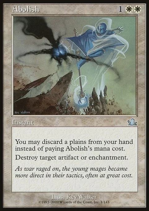 You may discard a Plains card rather than pay this spell's mana cost. Destroy target artifact or enchantment.
