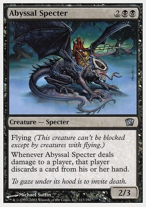 Flying Whenever Abyssal Specter deals damage to a player, that player discards a card.