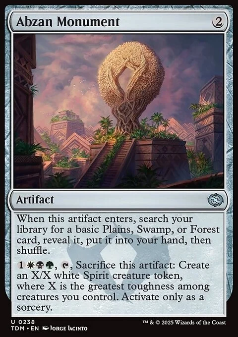 When this artifact enters, search your library for a basic Plains, Swamp, or Forest card, reveal it, put it into your hand, then shuffle.