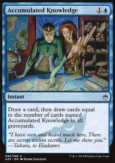 Draw a card, then draw cards equal to the number of cards named Accumulated Knowledge in all graveyards.