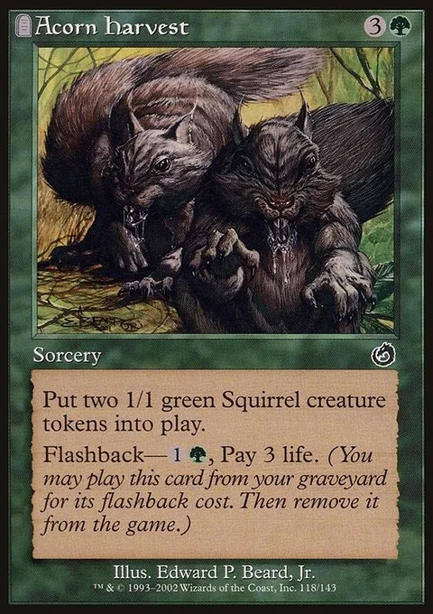 Create two 1/1 green Squirrel creature tokens. Flashback—{1}{G}, Pay 3 life. (You may cast this card from your graveyard for its flashback cost. Then exile it.)