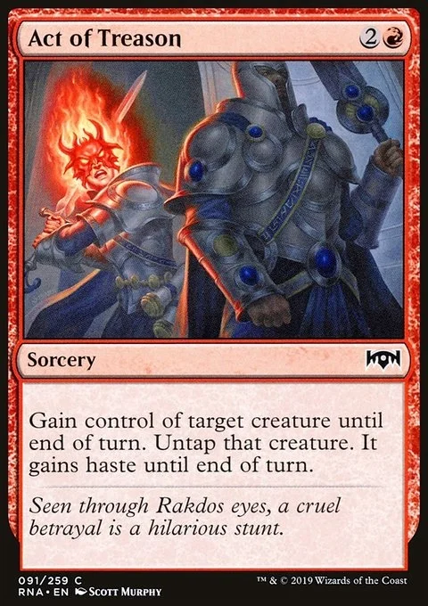 Gain control of target creature until end of turn. Untap that creature. It gains haste until end of turn. (It can attack and {T} this turn.)