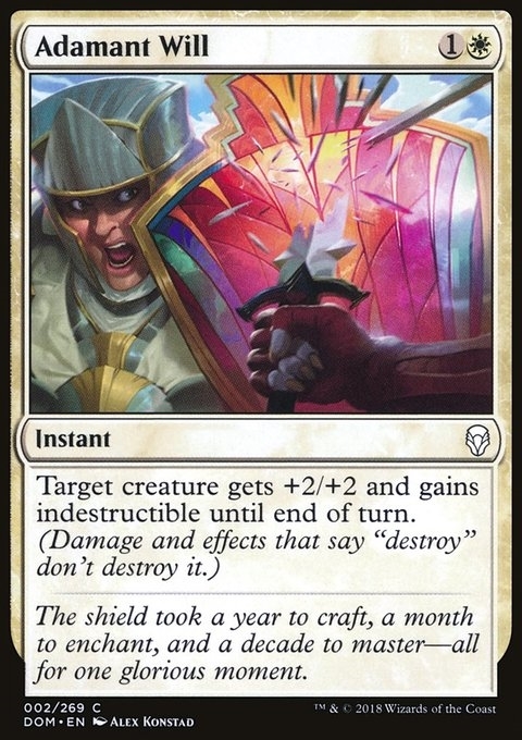 Target creature gets +2/+2 and gains indestructible until end of turn. (Damage and effects that say "destroy" don't destroy it.)