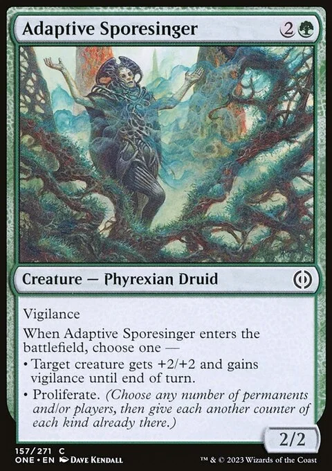 Vigilance When this creature enters, choose one — • Target creature gets +2/+2 and gains vigilance until end of turn. • Proliferate. (Choose any number of permanents and/or players, then give each another counter of each kind already there.)
