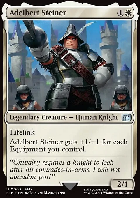 Lifelink Adelbert Steiner gets +1/+1 for each Equipment you control.