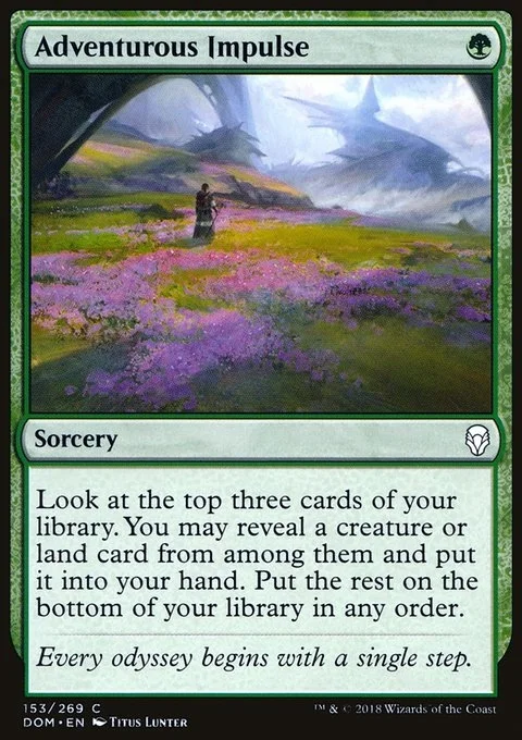 Look at the top three cards of your library. You may reveal a creature or land card from among them and put it into your hand. Put the rest on the bottom of your library in any order.