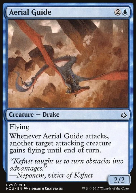 Flying Whenever this creature attacks, another target attacking creature gains flying until end of turn.