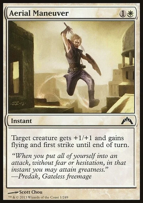 Target creature gets +1/+1 and gains flying and first strike until end of turn.