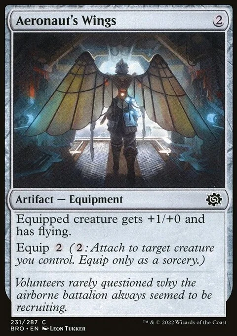 Equipped creature gets +1/+0 and has flying. Equip {2} ({2}: Attach to target creature you control. Equip only as a sorcery.)