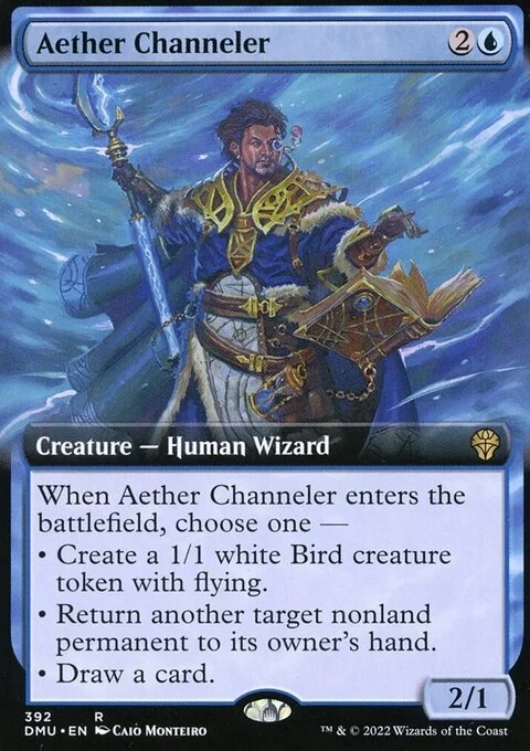 When this creature enters, choose one — • Create a 1/1 white Bird creature token with flying. • Return another target nonland permanent to its owner's hand. • Draw a card.