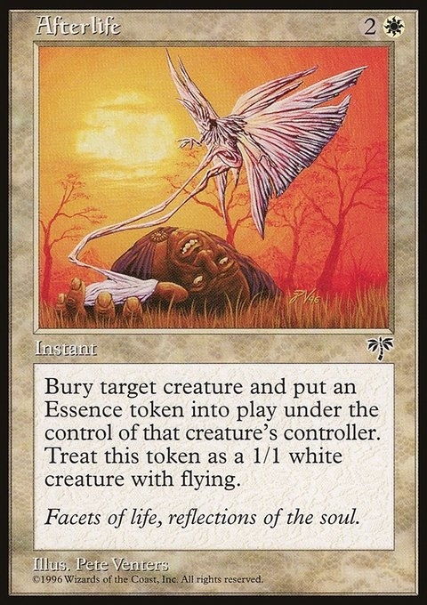 Bury target creature and put an Essence token into play under the control of that creature’s controller. Treat this token as a 1/1 white creature with flying.