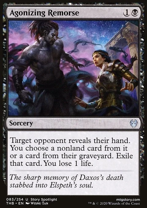 Target opponent reveals their hand. You choose a nonland card from it or a card from their graveyard. Exile that card. You lose 1 life.