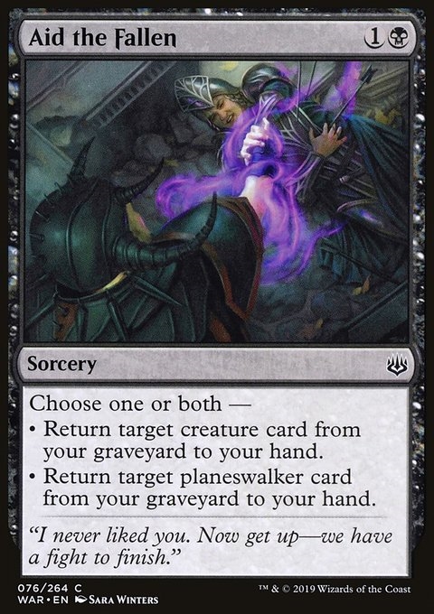 Choose one or both — • Return target creature card from your graveyard to your hand. • Return target planeswalker card from your graveyard to your hand.