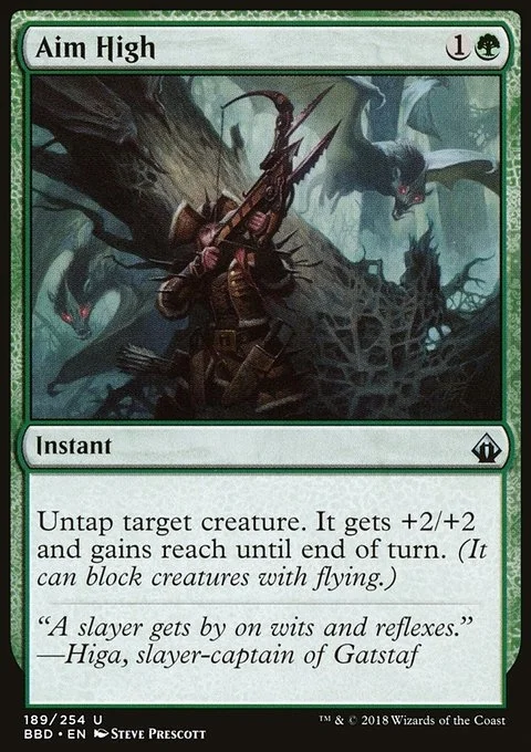Untap target creature. It gets +2/+2 and gains reach until end of turn. (It can block creatures with flying.)