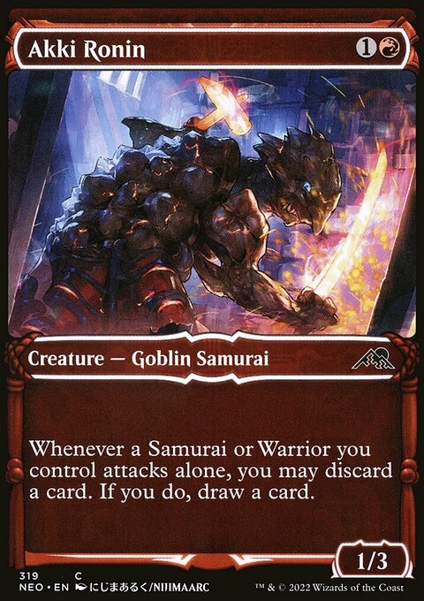 Whenever a Samurai or Warrior you control attacks alone, you may discard a card. If you do, draw a card.