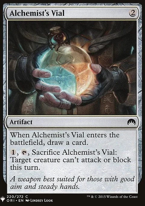 When this artifact enters, draw a card. {1}, {T}, Sacrifice this artifact: Target creature can't attack or block this turn.