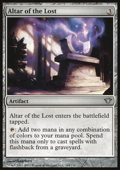 Altar of the Lost enters the battlefield tapped. {T}: Add two mana in any combination of colors. Spend this mana only to cast spells with flashback from a graveyard.