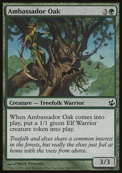When Ambassador Oak enters, create a 1/1 green Elf Warrior creature token.