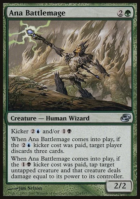 When Ana Battlemage comes into play, if the 2U kicker cost was paid, target player discards three cards.