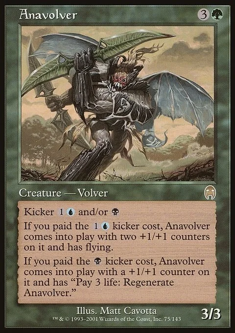 If Anavolver was kicked with its {B} kicker, it enters the battlefield with a +1/+1 counter on it and with "Pay 3 life: Regenerate Anavolver."
