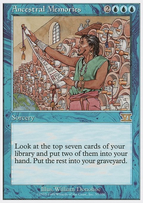 Look at the top seven cards of your library and put two of them into your hand. Put the rest into your graveyard.