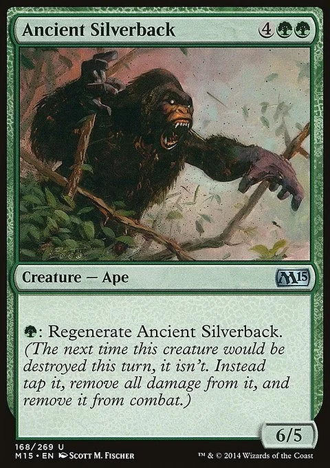 G: Regenerate Ancient Silverback. (The next time this creature would be destroyed this turn, it isn’t. Instead tap it, remove all damage from it, and remove it from combat.)