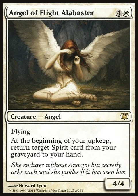 Flying At the beginning of your upkeep, return target Spirit card from your graveyard to your hand.