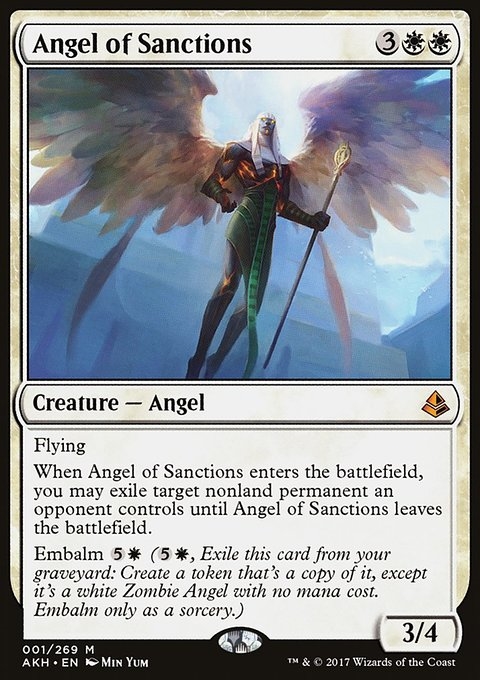 When Angel of Sanctions enters the battlefield, you may exile target nonland permanent an opponent controls until Angel of Sanctions leaves the battlefield.