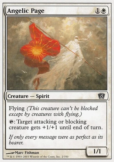 Flying {T}: Target attacking or blocking creature gets +1/+1 until end of turn.