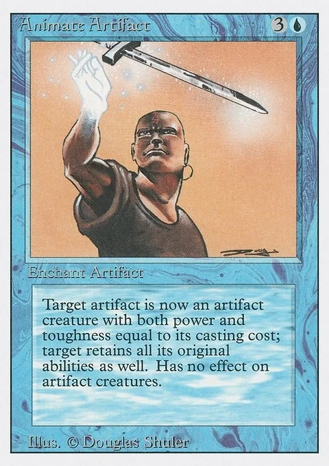 Target artifact is now an artifact creature with both power and toughness equal to its casting cost; target retains all its original abilities as well. Has no effect on artifact creatures.