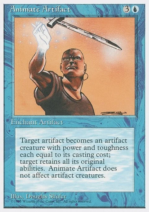 Target artifact becomes an artifact creature with power and toughness each equal to its casting cost; target retains all its original abilities. Animate Artifact does not affect artifact creatures.
