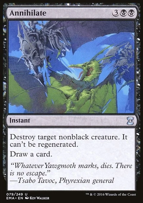 Destroy target nonblack creature. It can't be regenerated. Draw a card.