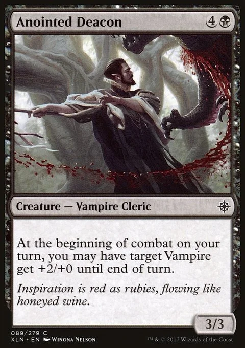 At the beginning of combat on your turn, you may have target Vampire get +2/+0 until end of turn.
