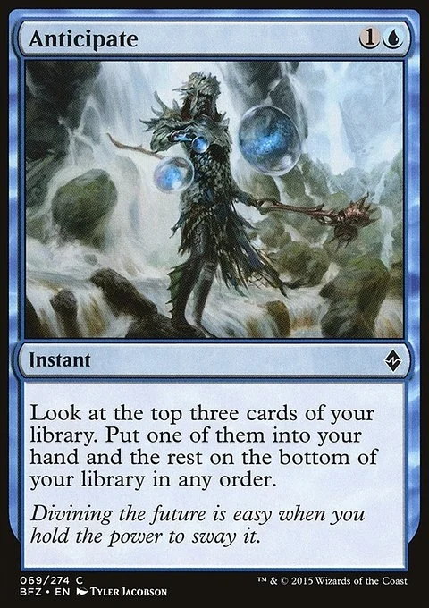 Look at the top three cards of your library. Put one of them into your hand and the rest on the bottom of your library in any order.