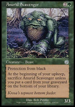 At the beginning of your upkeep, sacrifice Anurid Scavenger unless you put a card from your graveyard on the bottom of your library.