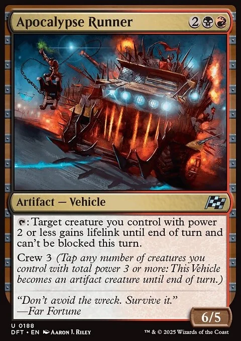 {T}: Target creature you control with power 2 or less gains lifelink until end of turn and can't be blocked this turn. Crew 3 (Tap any number of creatures you control with total power 3 or more: This Vehicle becomes an artifact creature until end of turn.)