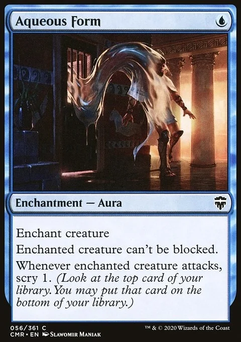 Enchant creature Enchanted creature can't be blocked. Whenever enchanted creature attacks, scry 1. (Look at the top card of your library. You may put that card on the bottom of your library.)