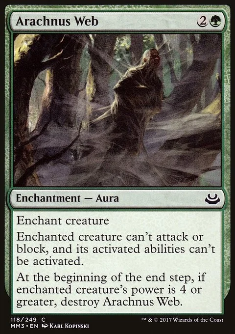 Enchant creature Enchanted creature can't attack or block, and its activated abilities can't be activated. At the beginning of the end step, if enchanted creature's power is 4 or greater, destroy this Aura.