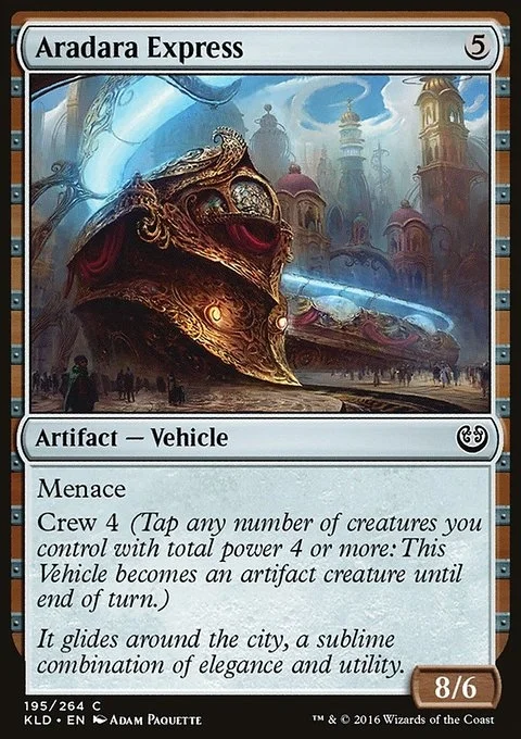 Menace Crew 4 (Tap any number of creatures you control with total power 4 or more: This Vehicle becomes an artifact creature until end of turn.)