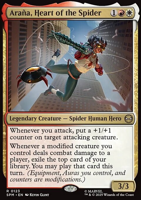 Whenever a modified creature you control deals combat damage to a player, exile the top card of your library. You may play that card this turn. (Equipment, Auras you control, and counters are modifications.)