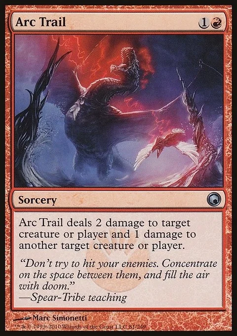 Arc Trail deals 2 damage to any target and 1 damage to another target.