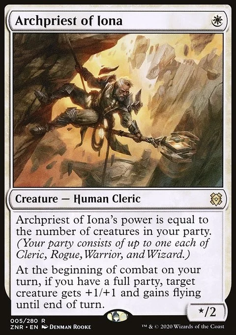 Archpriest of Iona's power is equal to the number of creatures in your party. (Your party consists of up to one each of Cleric, Rogue, Warrior, and Wizard.)