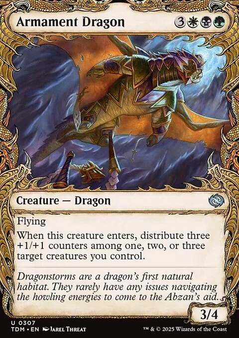 Flying When this creature enters, distribute three +1/+1 counters among one, two, or three target creatures you control.