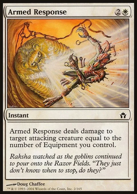 Armed Response deals damage to target attacking creature equal to the number of Equipment you control.