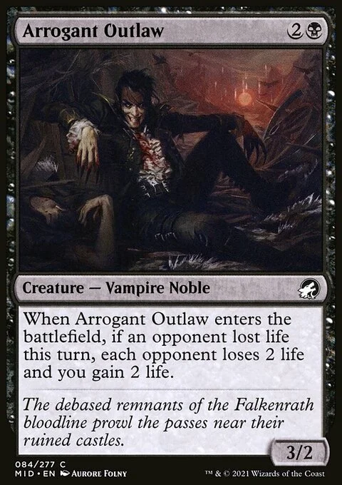 When Arrogant Outlaw enters the battlefield, if an opponent lost life this turn, each opponent loses 2 life and you gain 2 life.