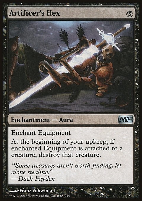 Enchant Equipment At the beginning of your upkeep, if enchanted Equipment is attached to a creature, destroy that creature.